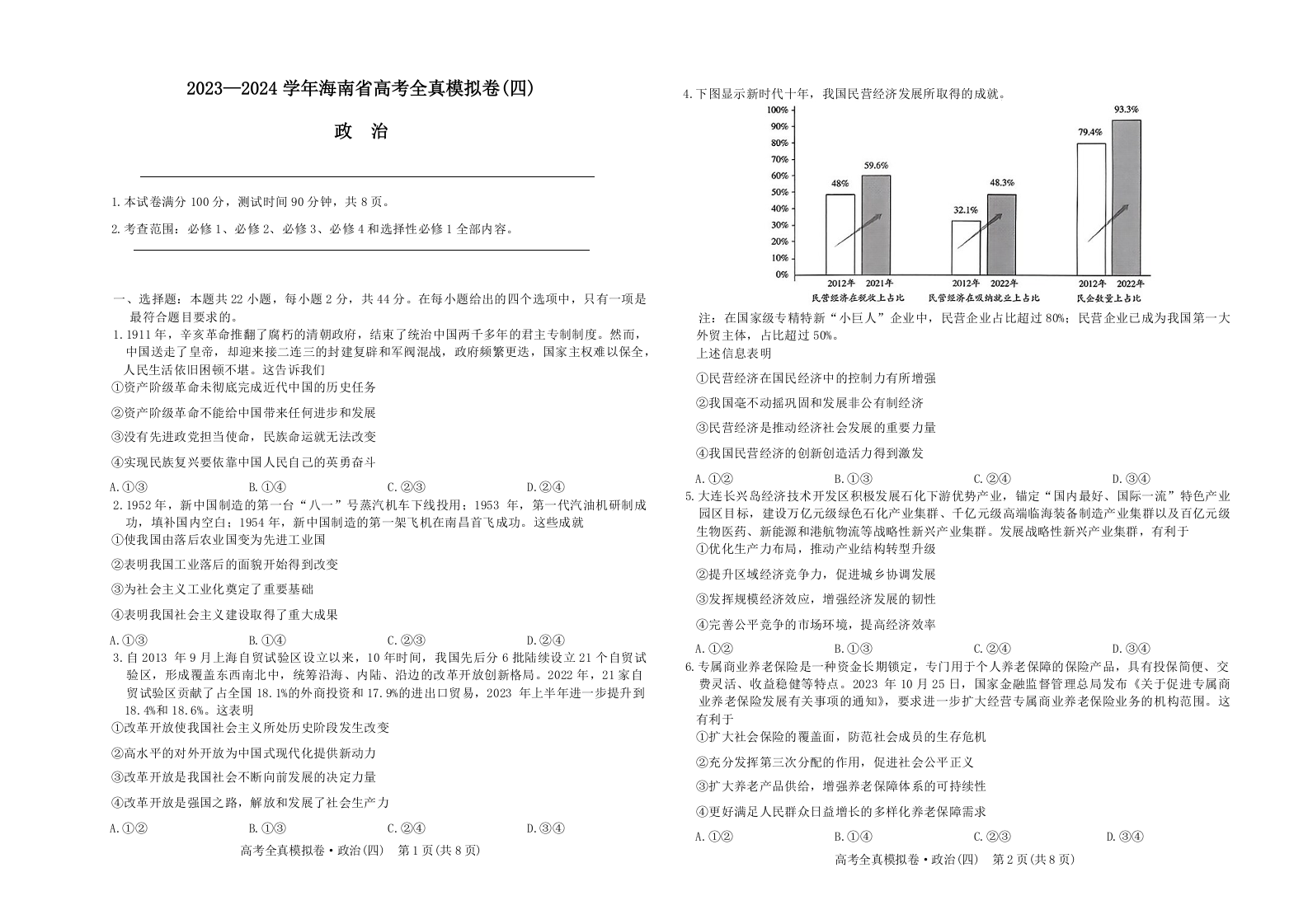 海南省2024届高三上学期高考全真模拟卷(四)政治