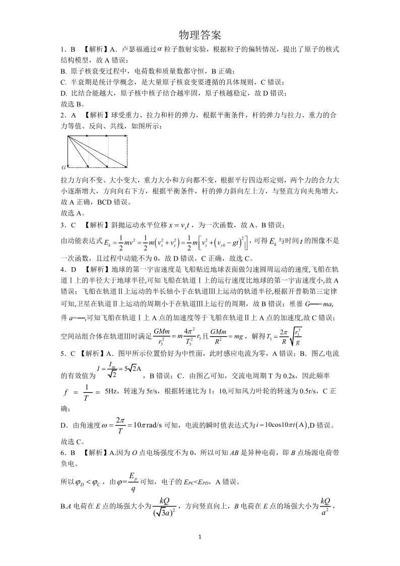 邕衡金卷·广西南宁市第三中学2024届高三第一次适应性考试(12月联考)物理答案