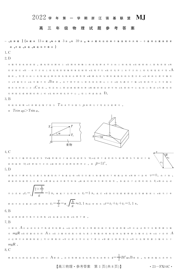 高三物理答案--浙江省强基联盟2023届高三上学期选考仿真密卷