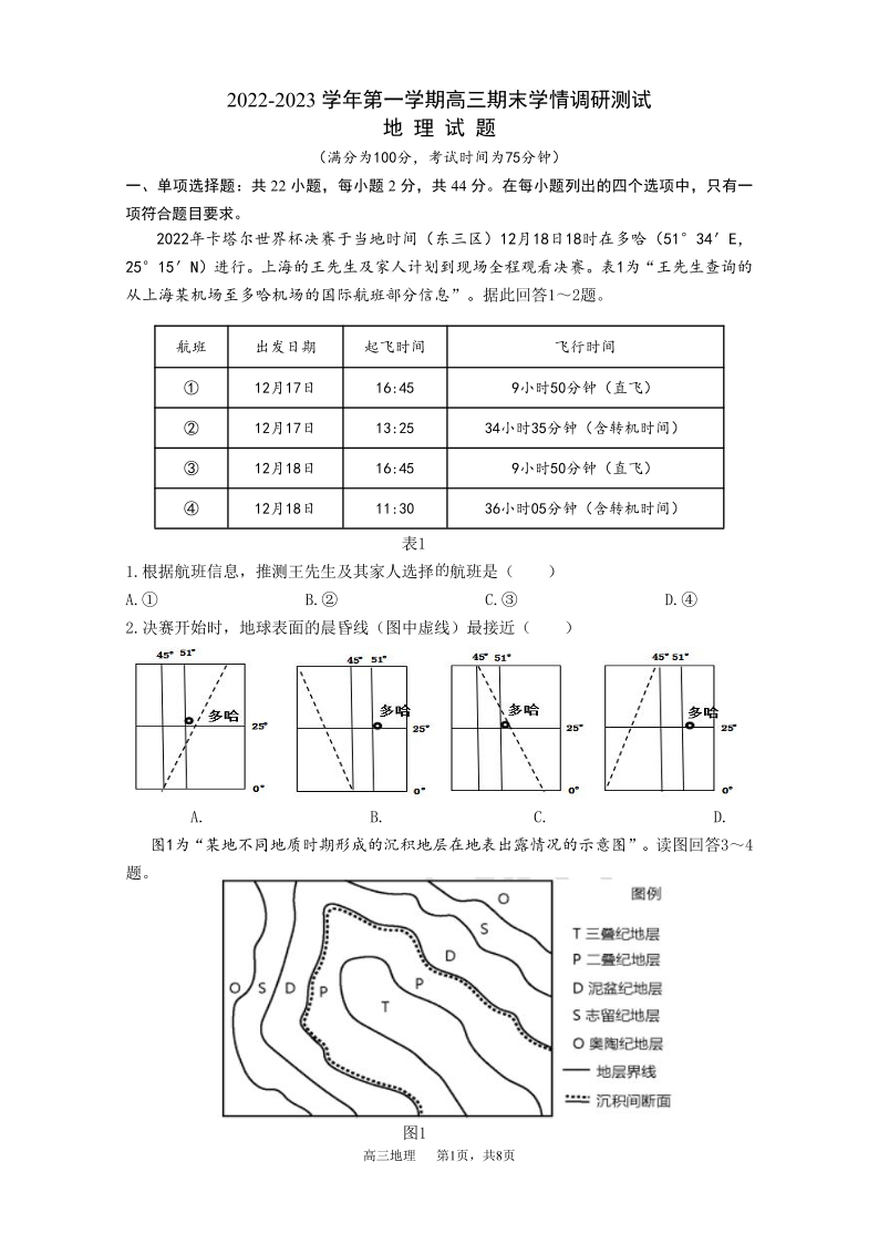 高三地理--江苏省扬州市高邮市高邮市2022-2023学年高三上学期1月期末