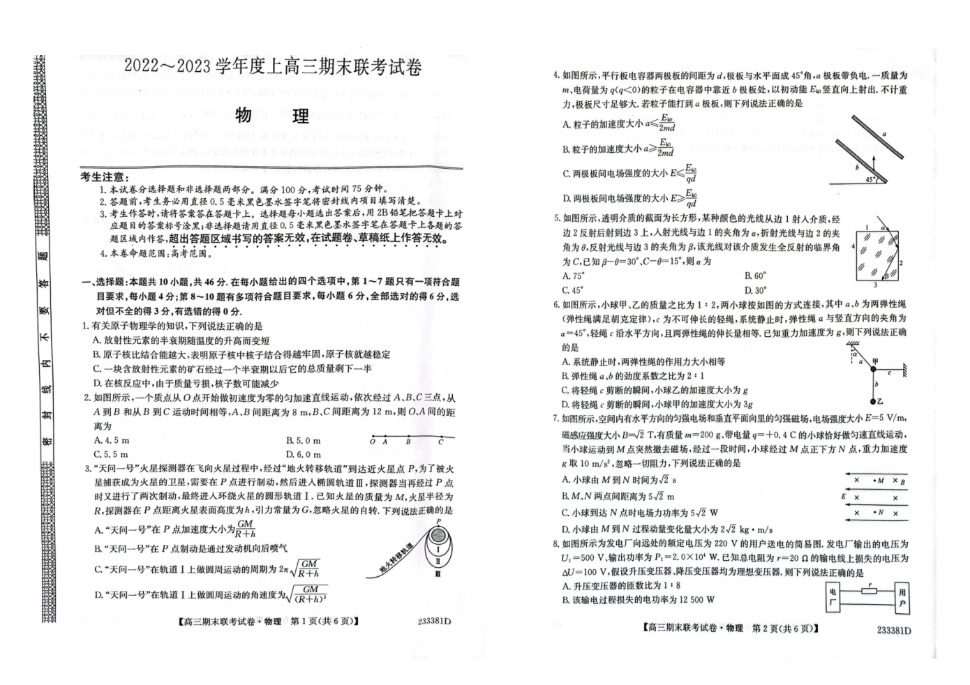 高三物理--辽宁省2022-2023学年高三上学期期末联考