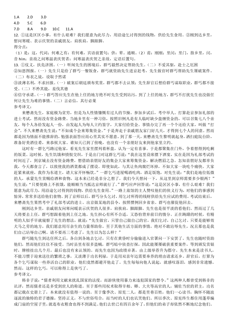 高三语文答案--天津市第一中学2022-2023学年高三上学期第三次月考