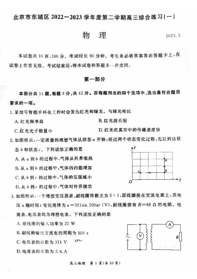高三物理--北京市东城区2023高三一模