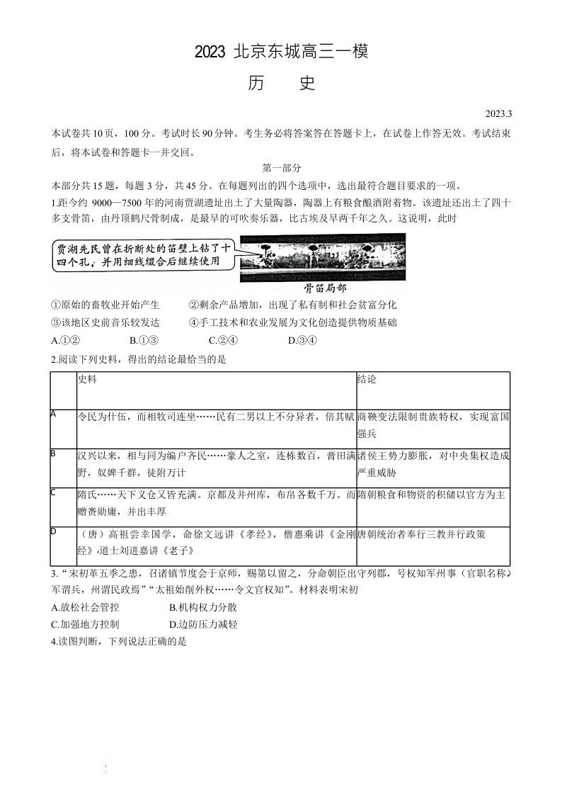 高三历史+答案--北京市东城区2023高三一模