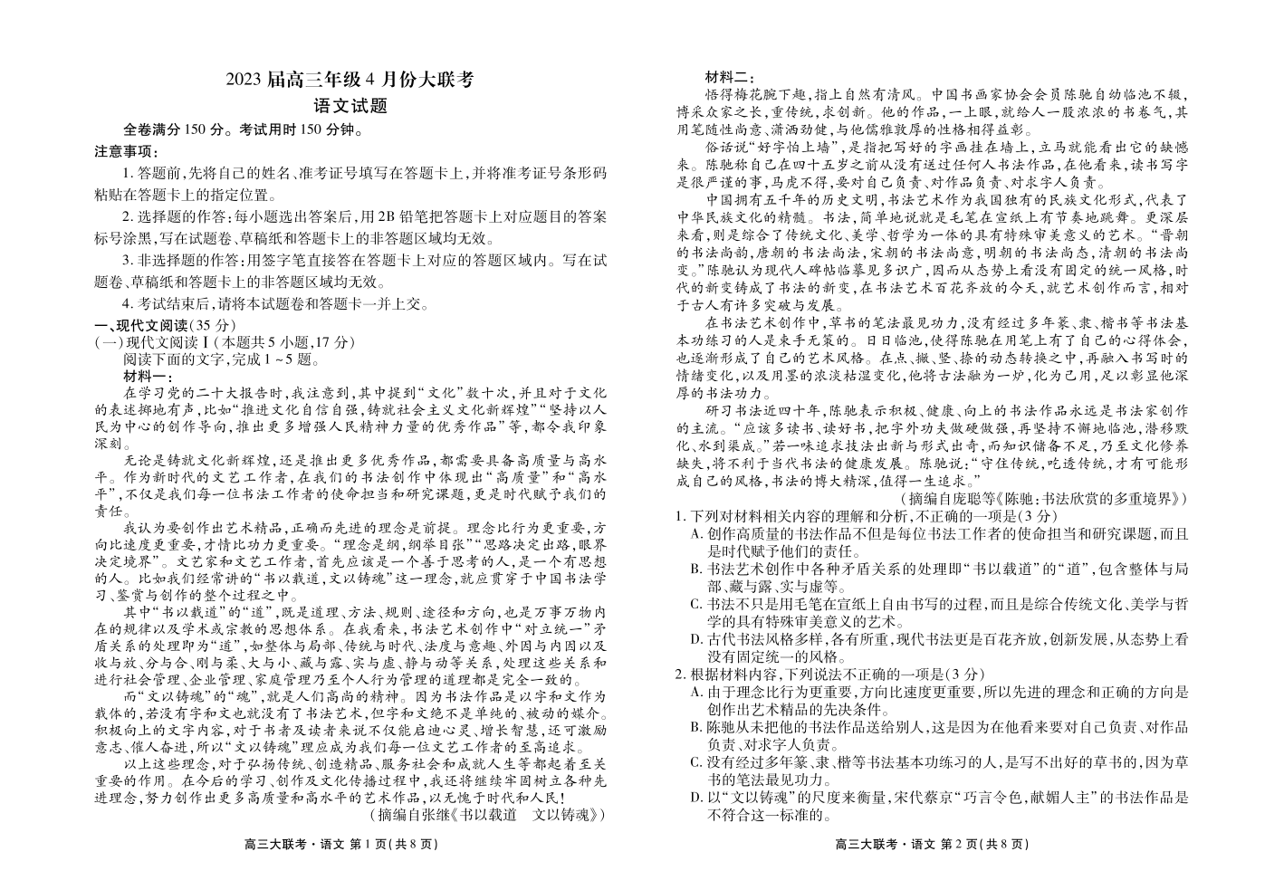 高三语文--广东省衡水金卷2023届高三年级4月份大联考