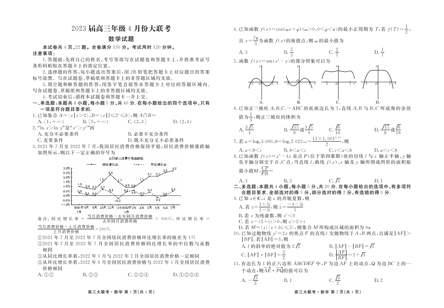高三数学--广东省衡水金卷2023届高三年级4月份大联考