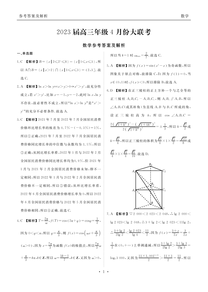 高三数学答案--广东省衡水金卷2023届高三年级4月份大联考