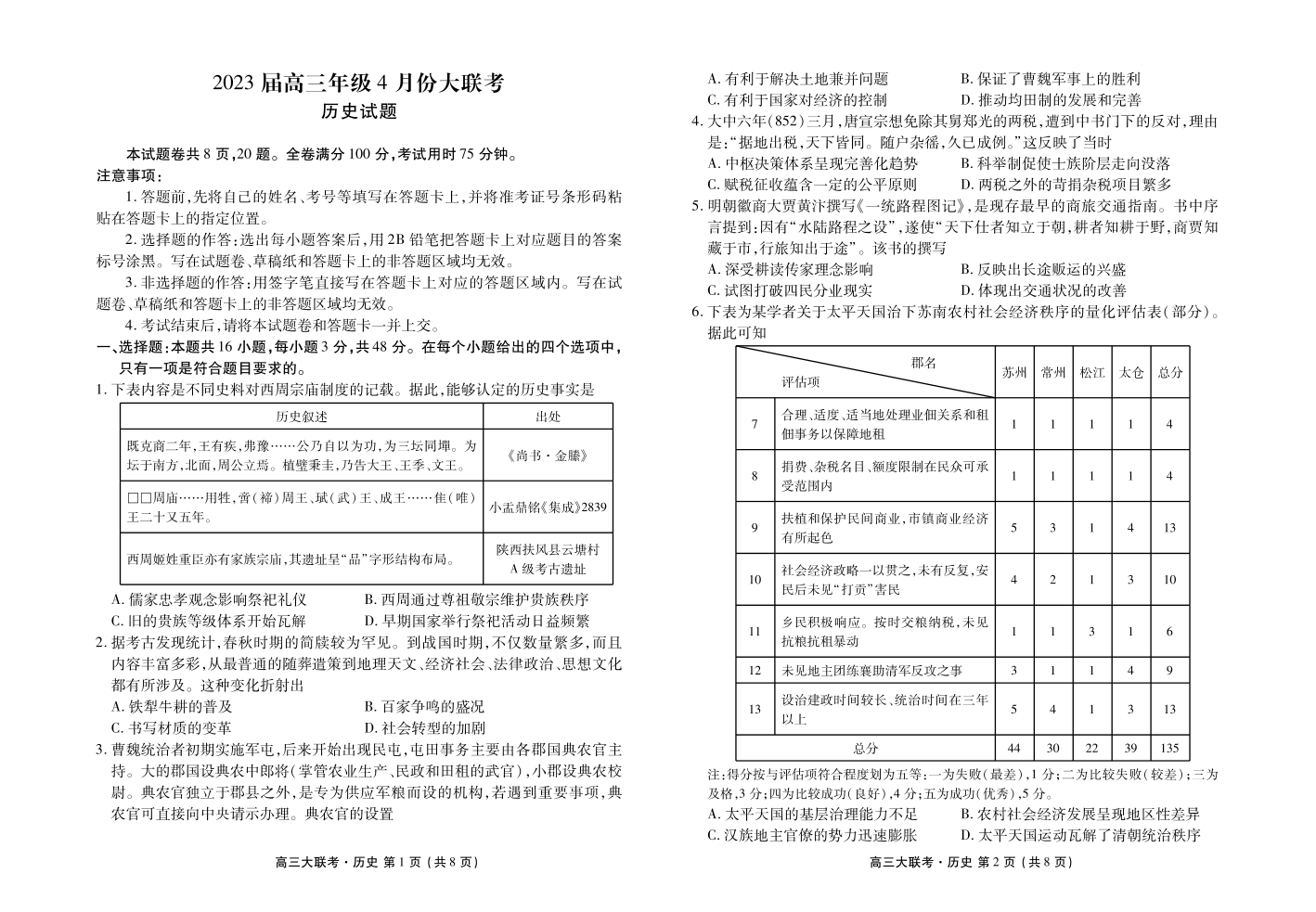 高三历史--广东省衡水金卷2023届高三年级4月份大联考