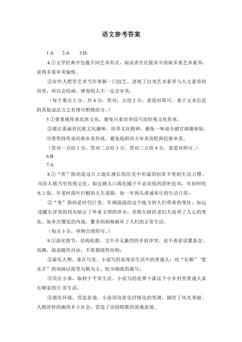 高三语文答案--广东省汕头市2023普通高考第二次模拟考试(汕头二模)
