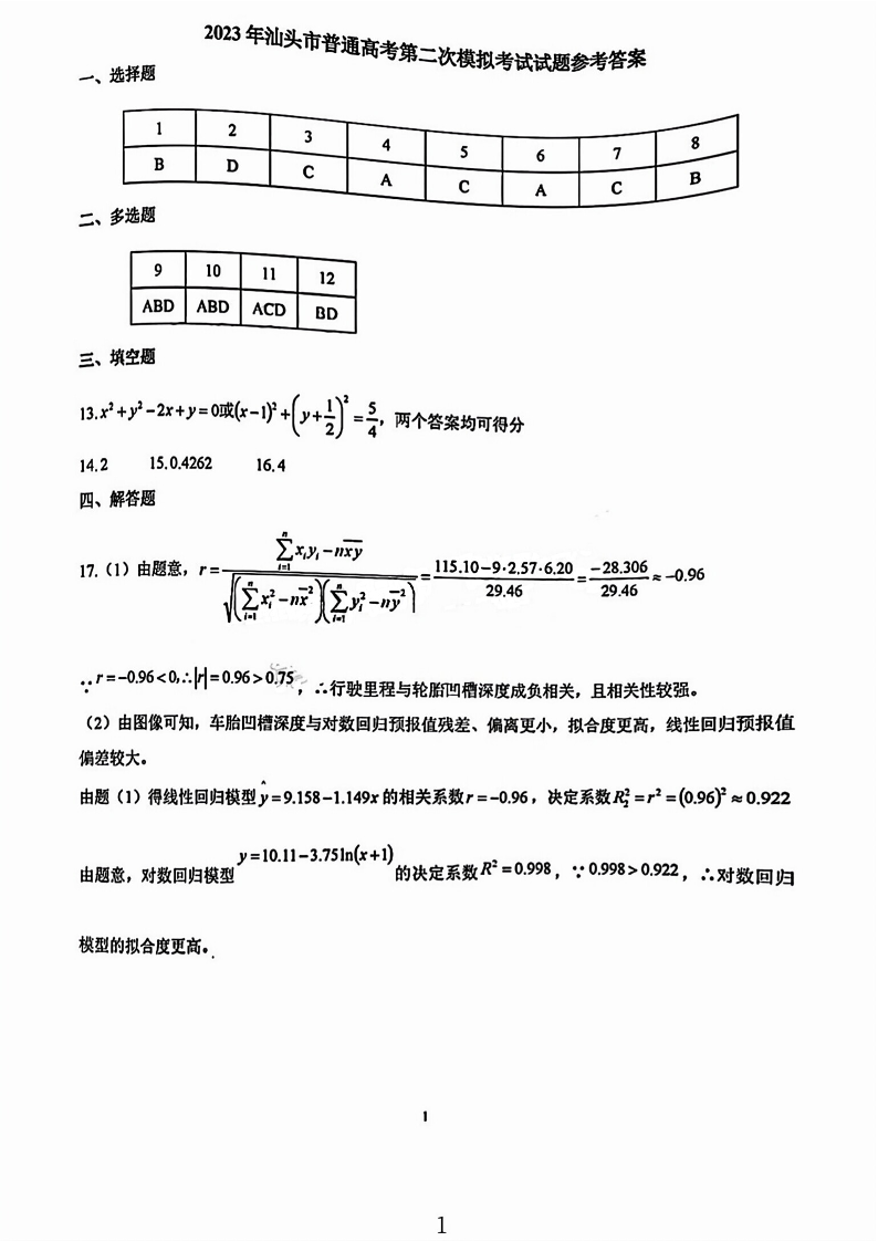 高三数学答案--广东省汕头市2023普通高考第二次模拟考试(汕头二模)