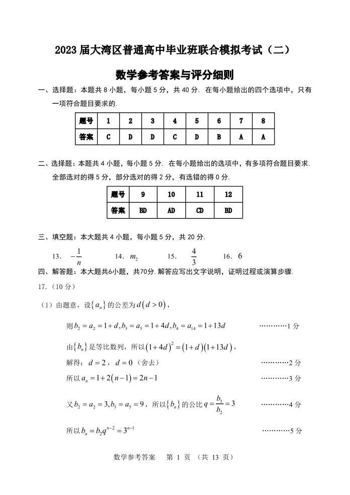 高三数学答案--广东省粤港澳大湾区2023普通高中毕业班联合模拟考试(二)