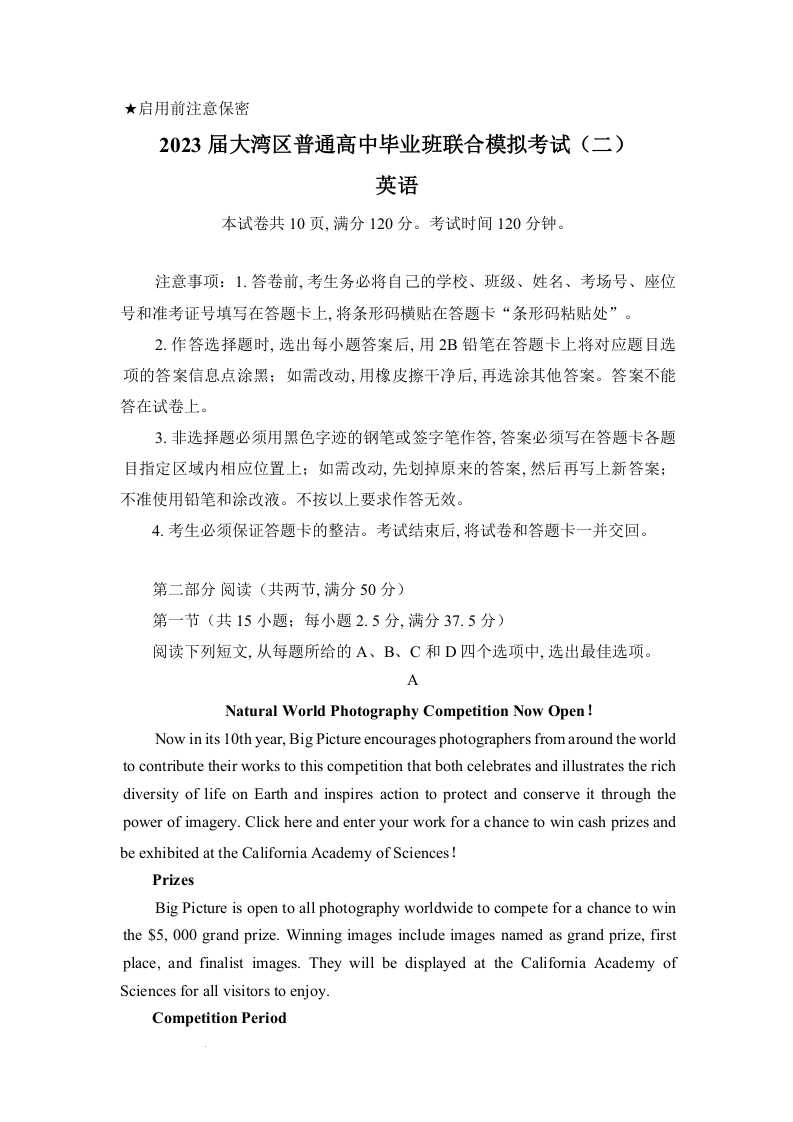 高三英语--广东省粤港澳大湾区2023普通高中毕业班联合模拟考试(二)
