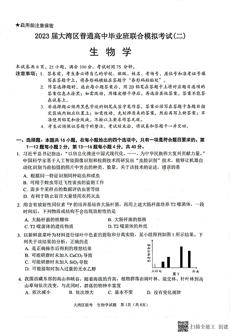 高三生物--广东省粤港澳大湾区2023普通高中毕业班联合模拟考试(二)
