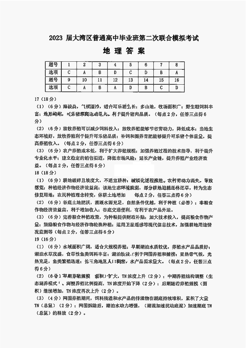 高三地理答案--广东省粤港澳大湾区2023普通高中毕业班联合模拟考试(二)