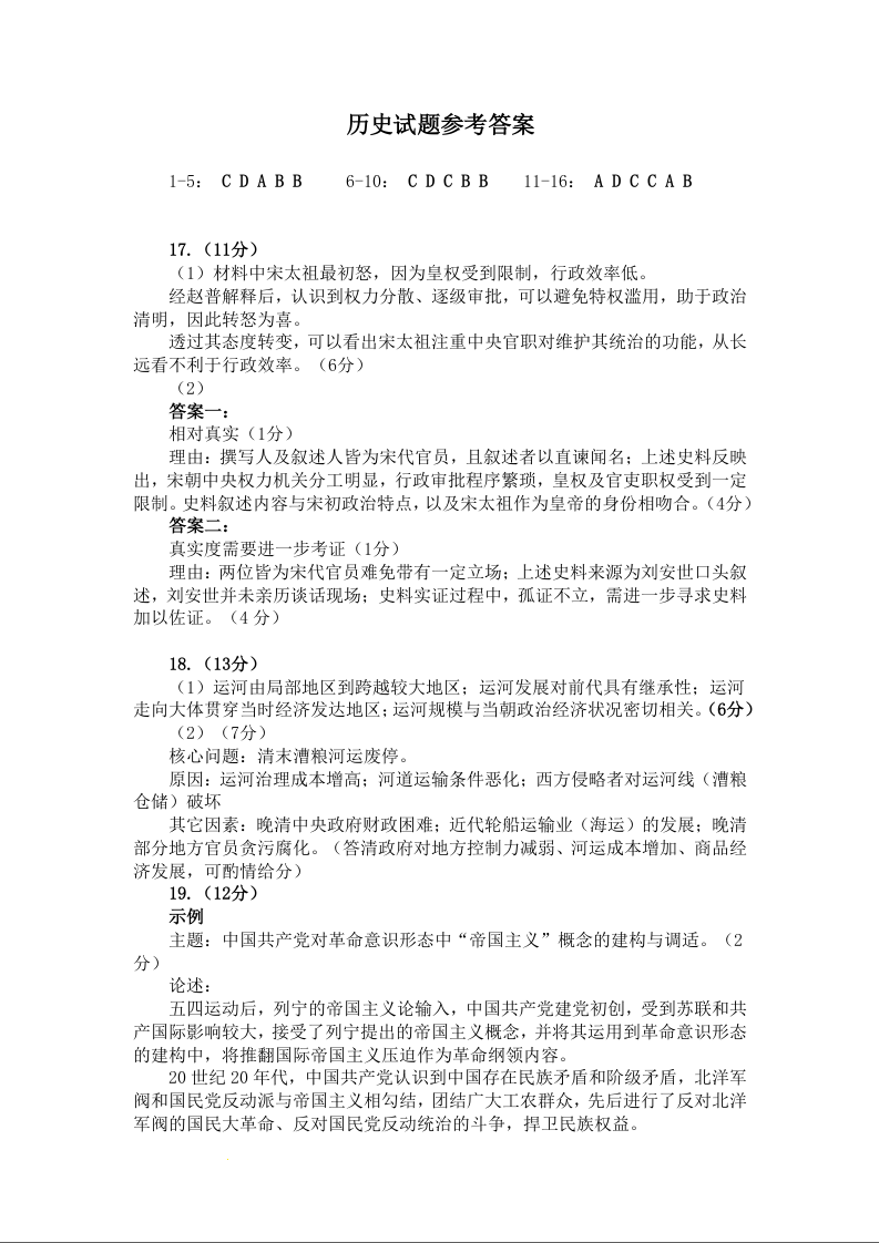高三历史答案--河北保定2023年高三第一次模拟考试(保定一模)