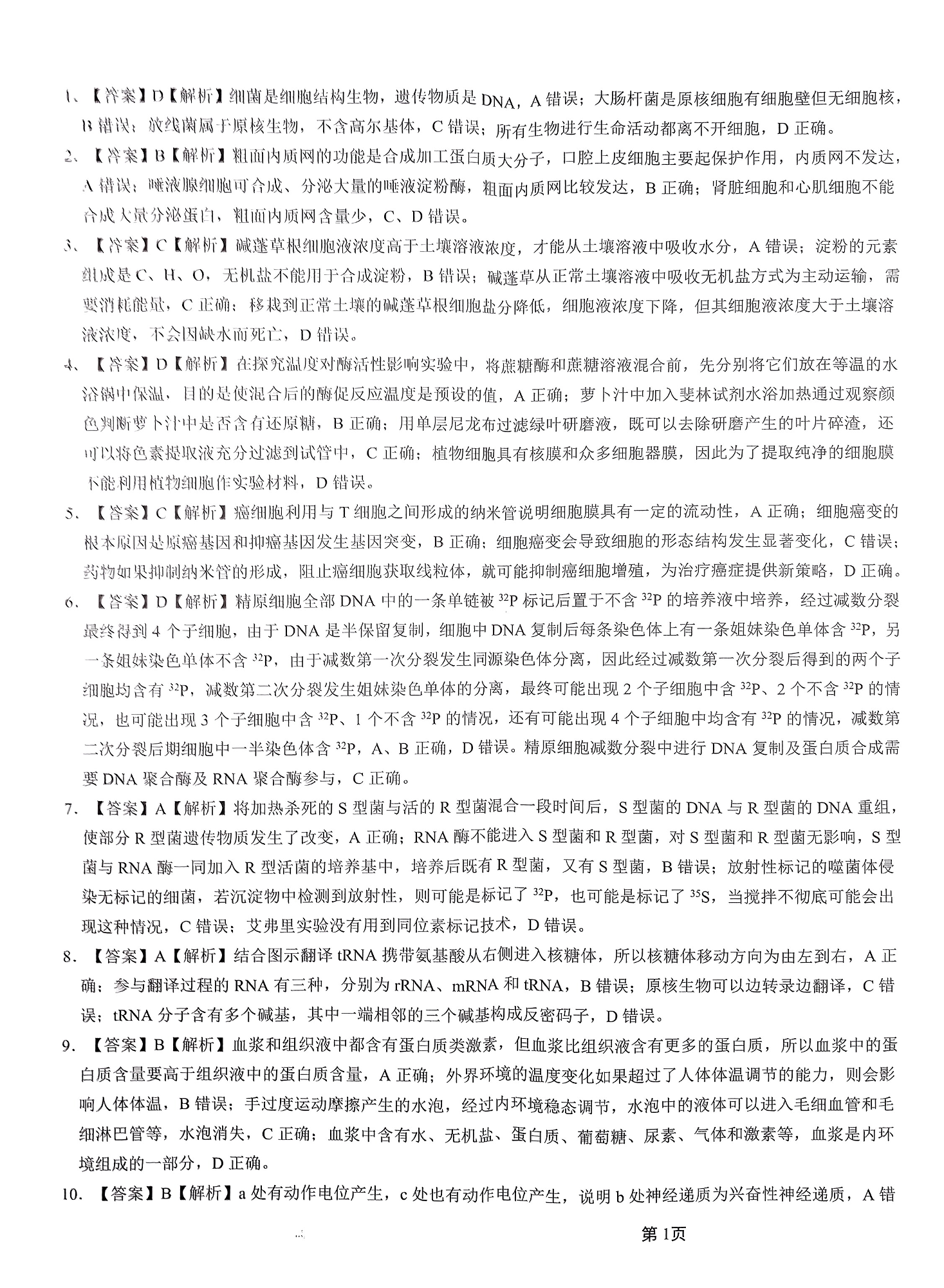 高三生物答案--河北省2023高三第一次高考模拟演练