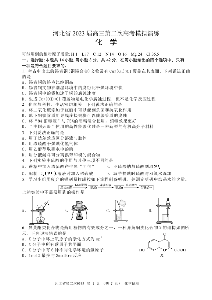 高三化学--河北省2023届高三第二次高考模拟演练(河北二模)