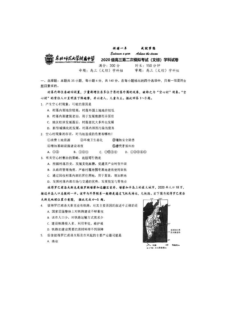 高三文综+答案--吉林省长春市东北师范大学附属中学2022-2023学年高三下学期第二次模拟考试