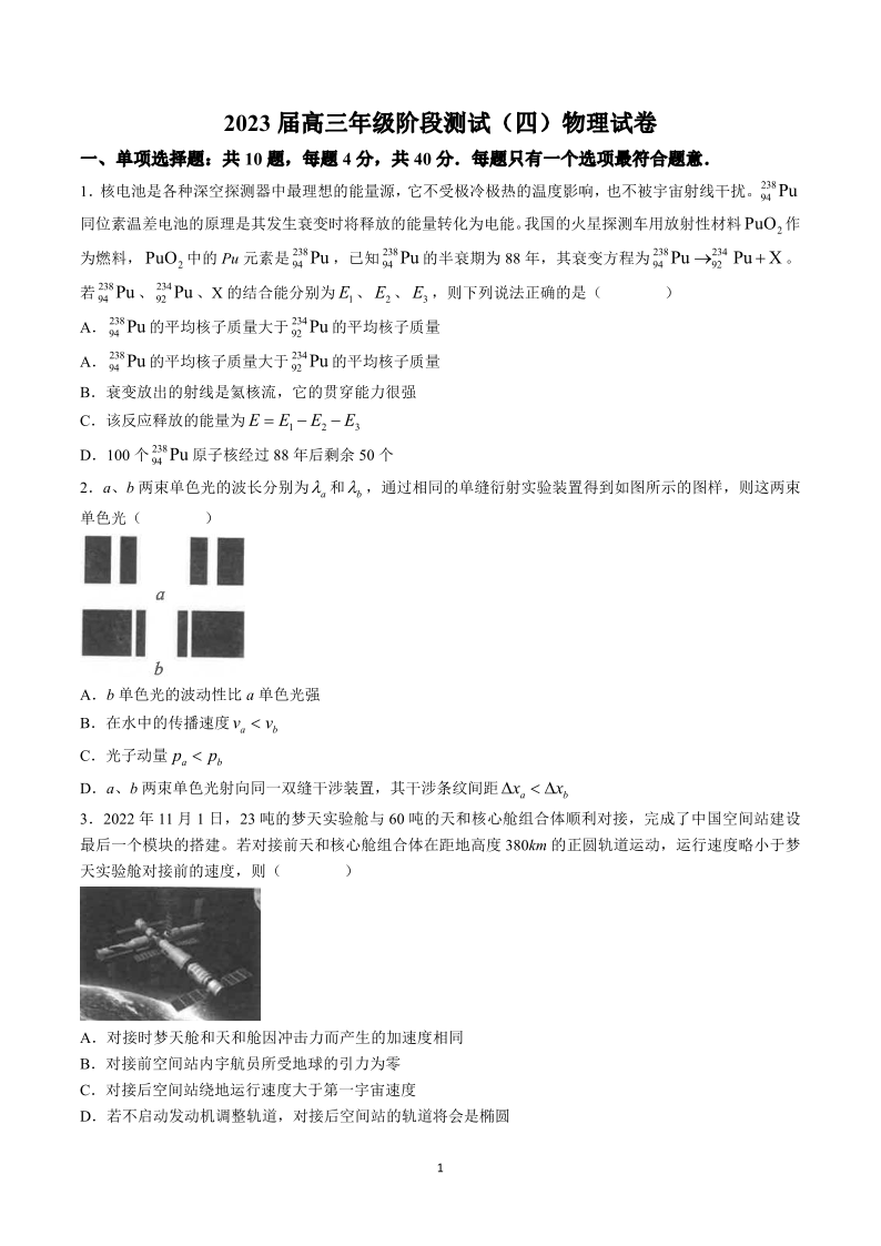 高三物理+答案--江苏省海安高级中学2023届高三年级阶段检测(四)