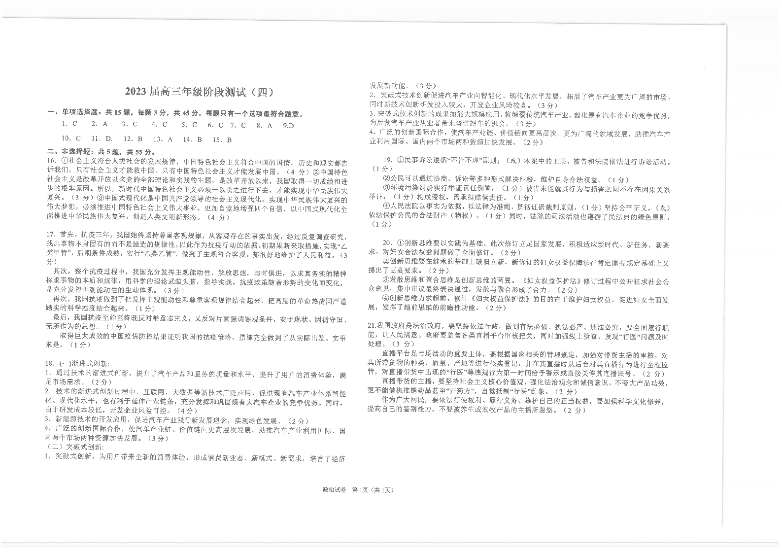 高三政治答案--江苏省海安高级中学2023届高三年级阶段检测(四)