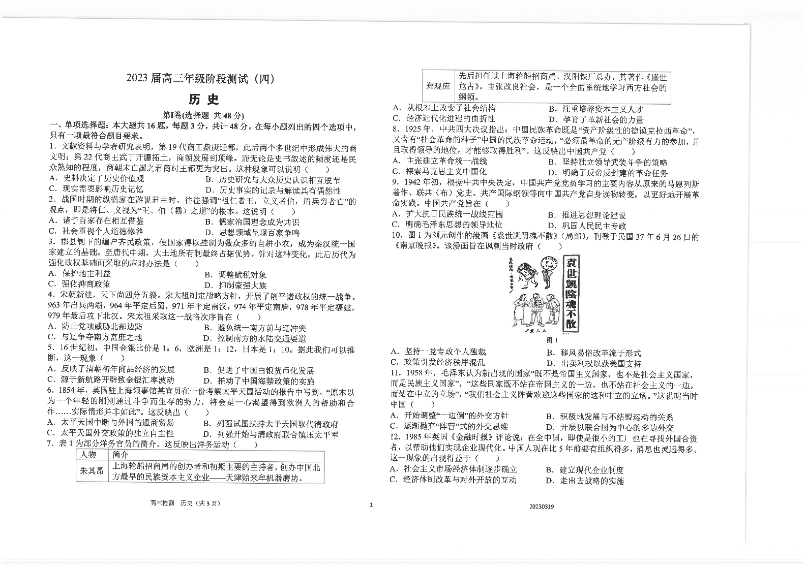 高三历史--江苏省海安高级中学2023届高三年级阶段检测(四)