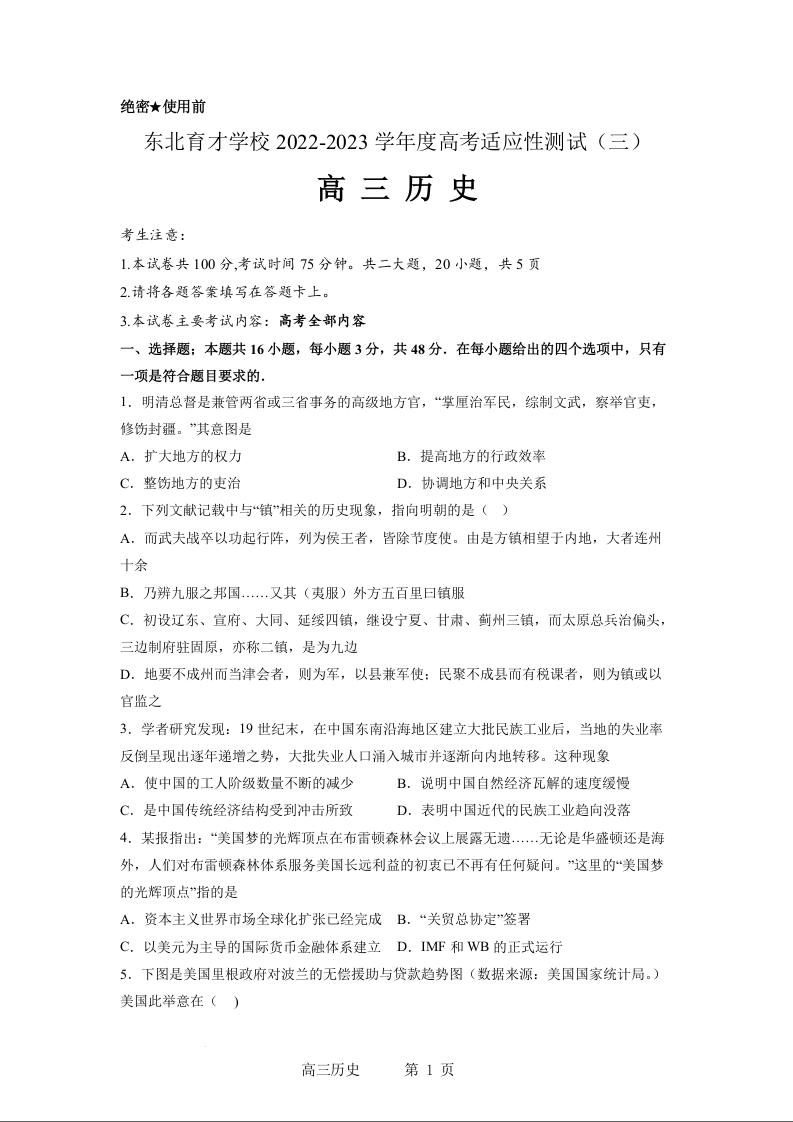 高三历史--辽宁省沈阳市东北育才学校2023届高三 三模