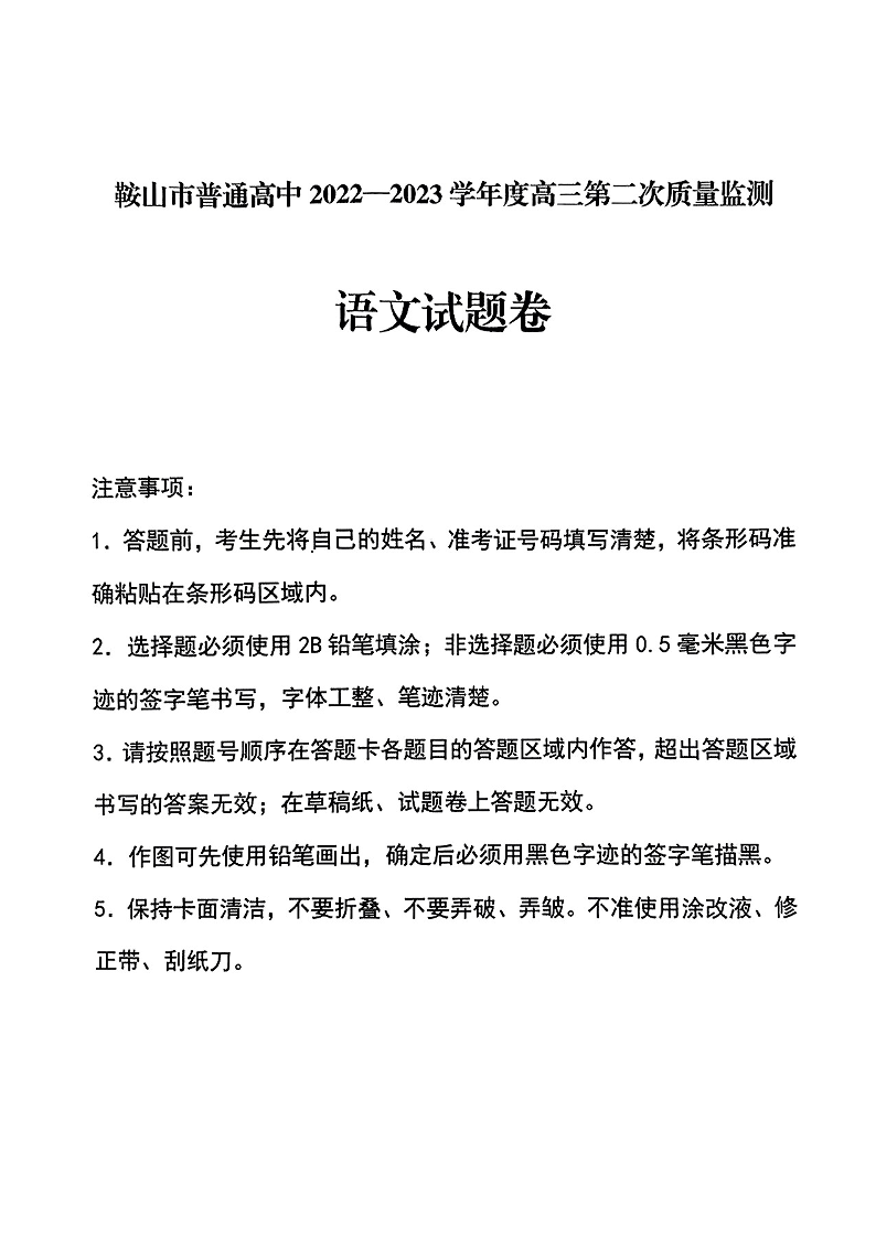 高三语文--辽宁省鞍山市普通高中高三第二次质量监测