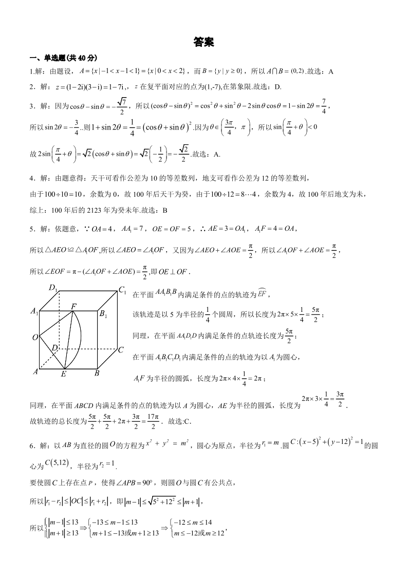 高三数学答案--辽宁省鞍山市普通高中高三第二次质量监测