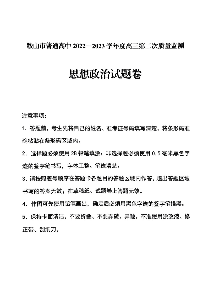 高三政治--辽宁省鞍山市普通高中高三第二次质量监测