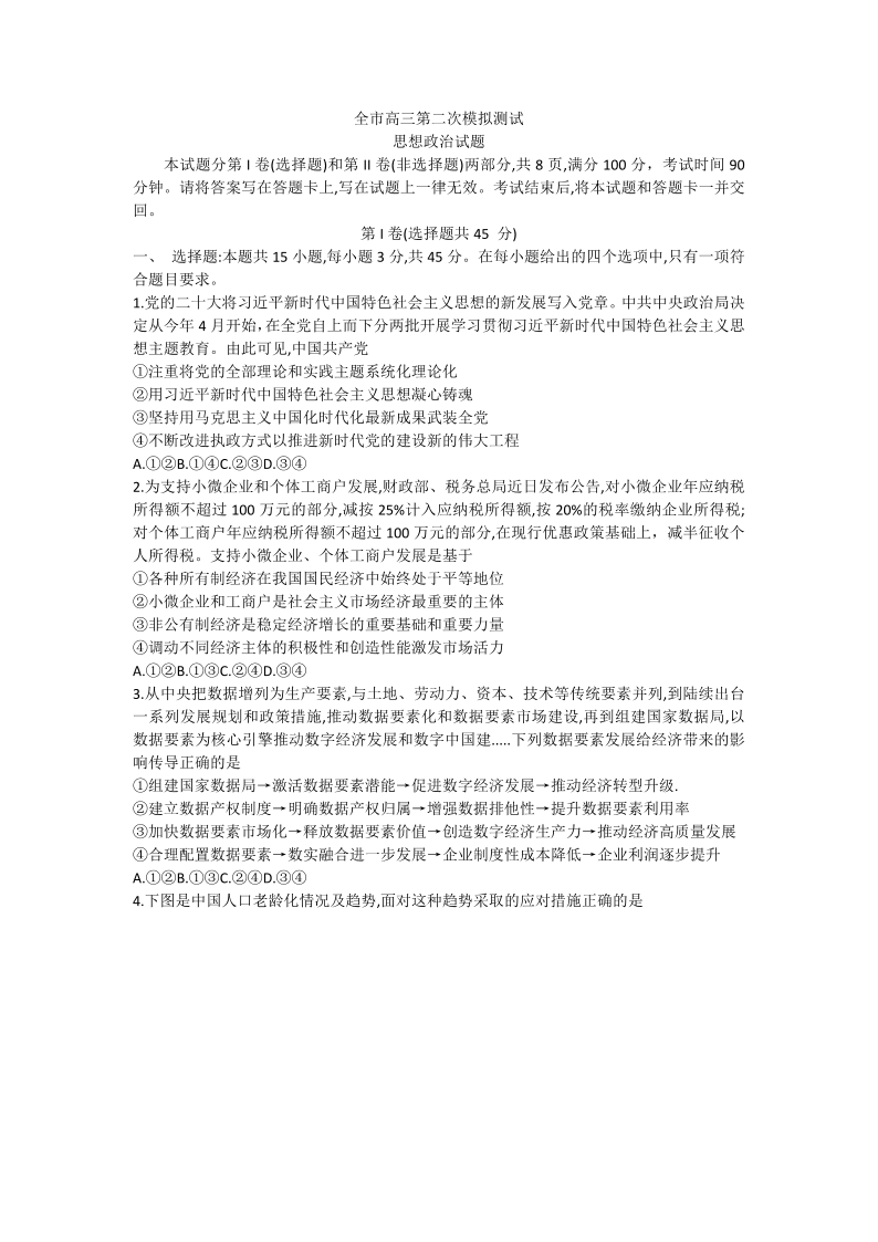 高三政治--山东省菏泽市2023届高三二模