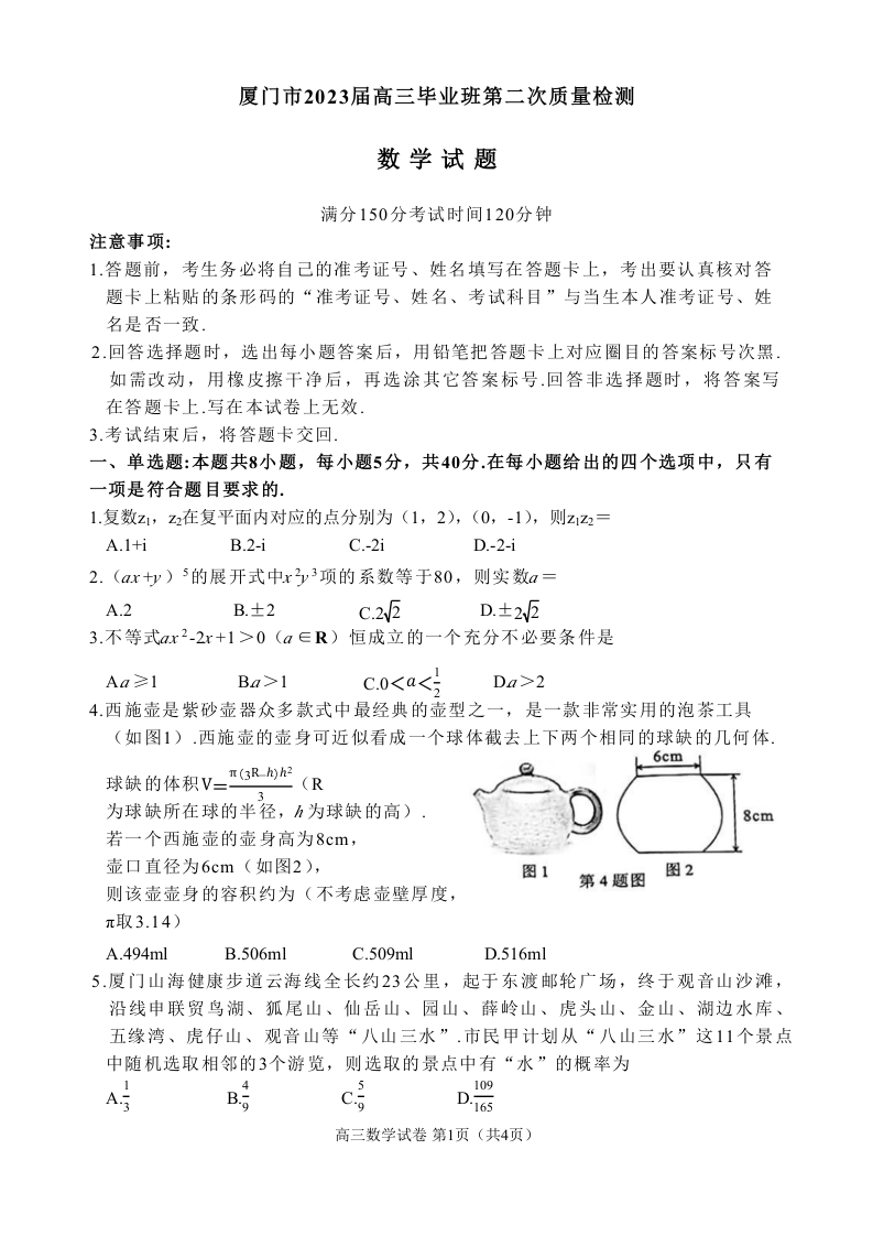 高三数学--福建省厦门市2023届高三毕业班3月第二次质量检测
