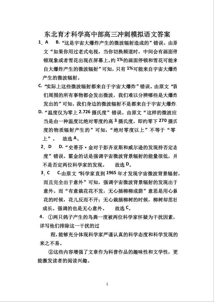 高三语文答案--辽宁省沈阳市东北育才学校2023届高三下学期最后一次模拟考试