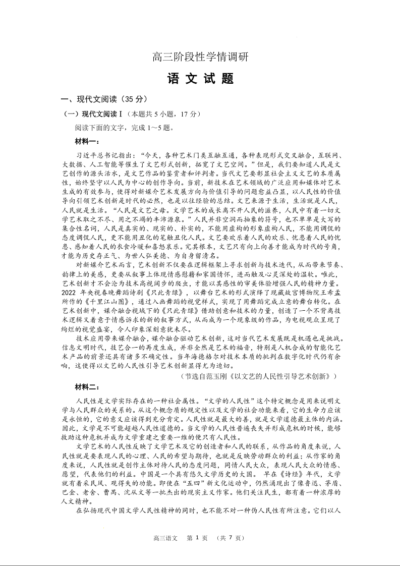高三语文--江苏省南京市五校2023届高三上学期期中联考