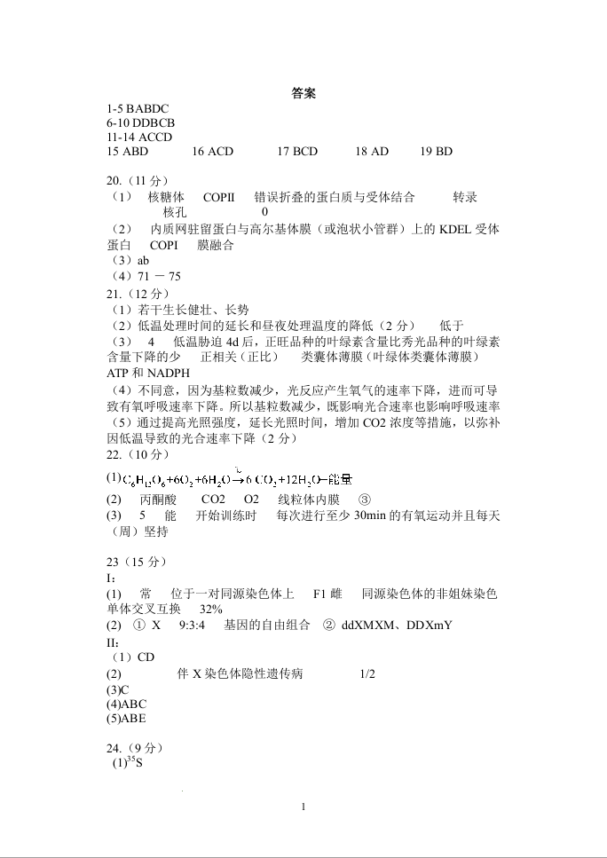 高三生物答案--江苏省扬州中学2023届高三上学期10月双周练