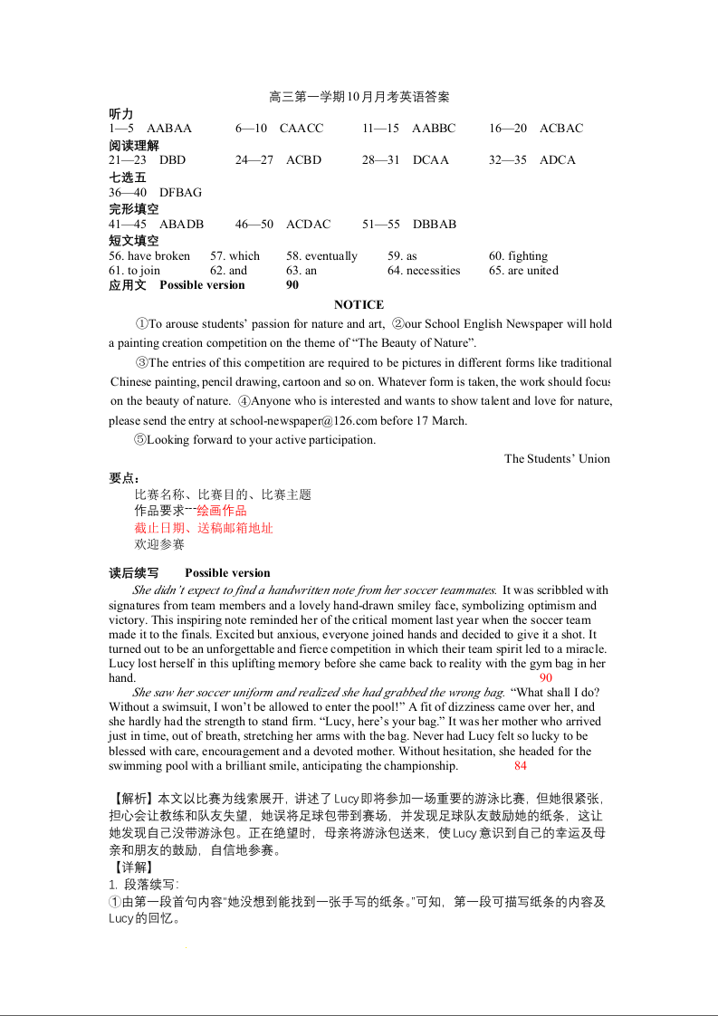 高三英语答案--江苏省扬州中学2023届高三上学期10月月考