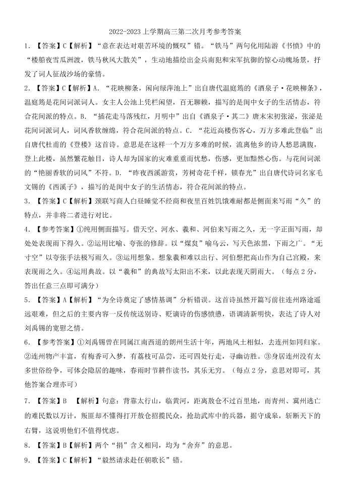 高三语文答案--河北省邢台市五校联考2023届高三上学期期中考试