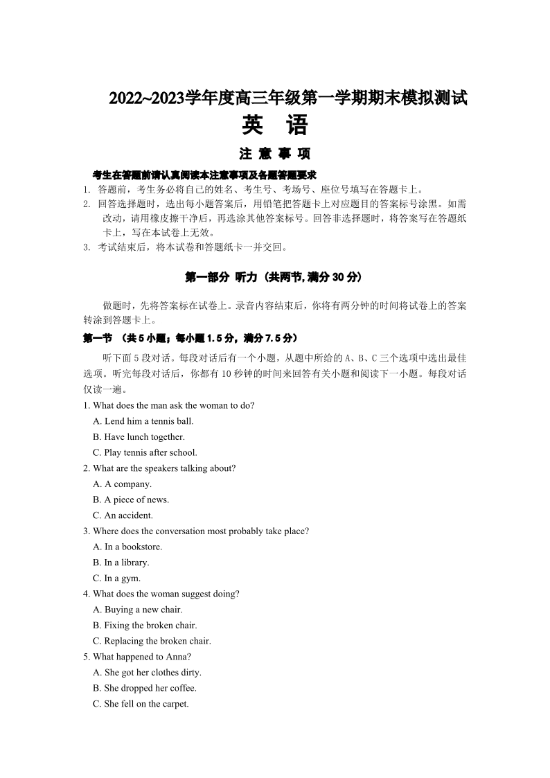 高三英语--江苏省徐州市2022-2023学年高三上学期期末模拟测