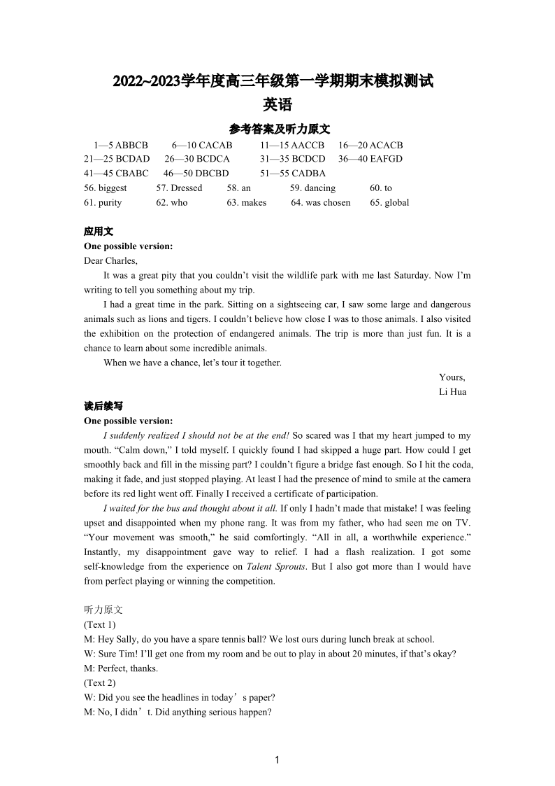 高三英语答案--江苏省徐州市2022-2023学年高三上学期期末模拟测