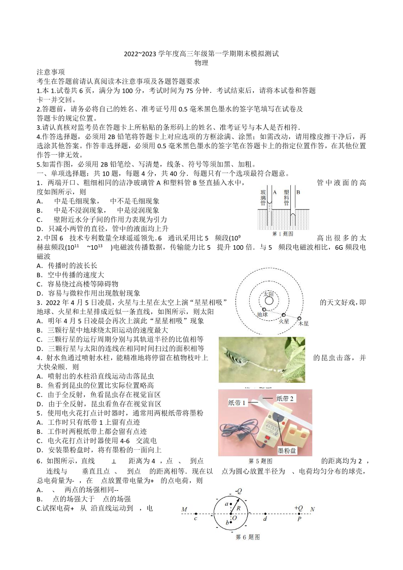 高三物理+答案--江苏省徐州市2022-2023学年高三上学期期末模拟测