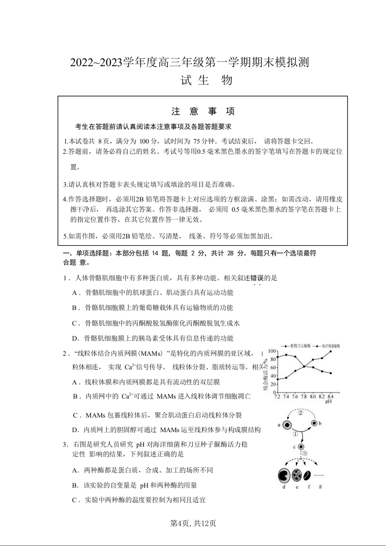 高三生物+答案--江苏省徐州市2022-2023学年高三上学期期末模拟测