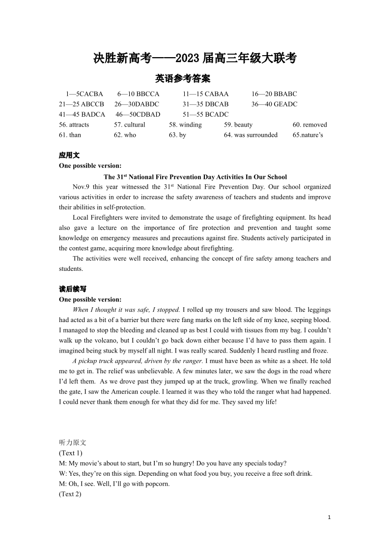 高三英语答案--江苏省决胜新高考2023届高三上学期12月第四次大联考