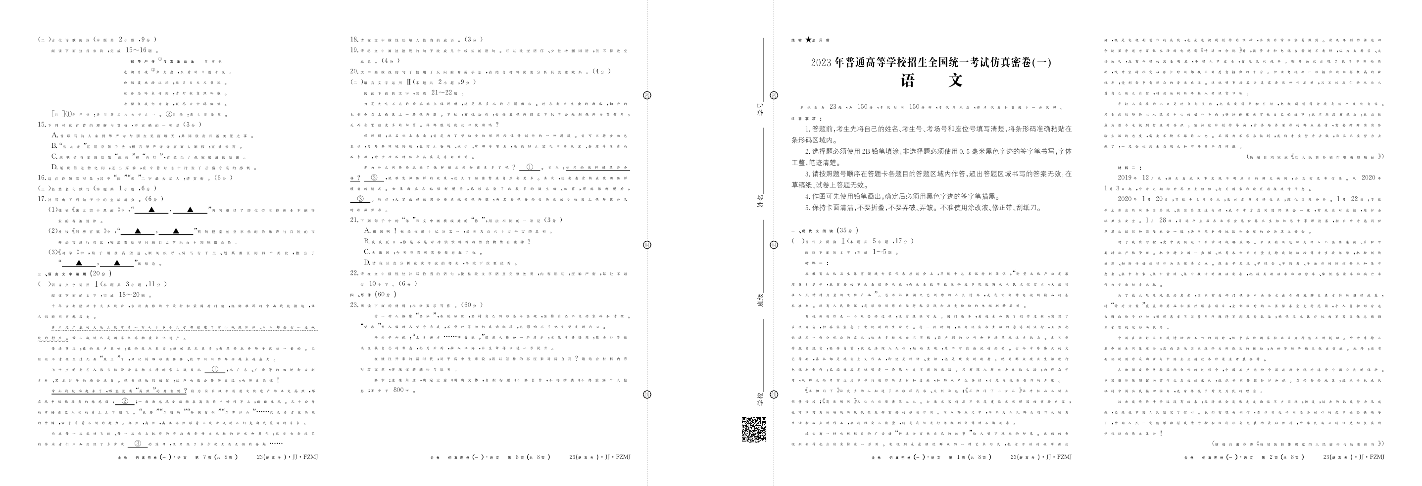 高三语文--湖南省普通高中2023年学业水平选择性考试仿真密卷(一)(新教材新高考)