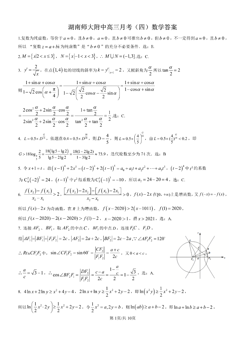 高三数学答案-湖南师范大学附属中学2022-2023学年高三上学期月考卷(四)