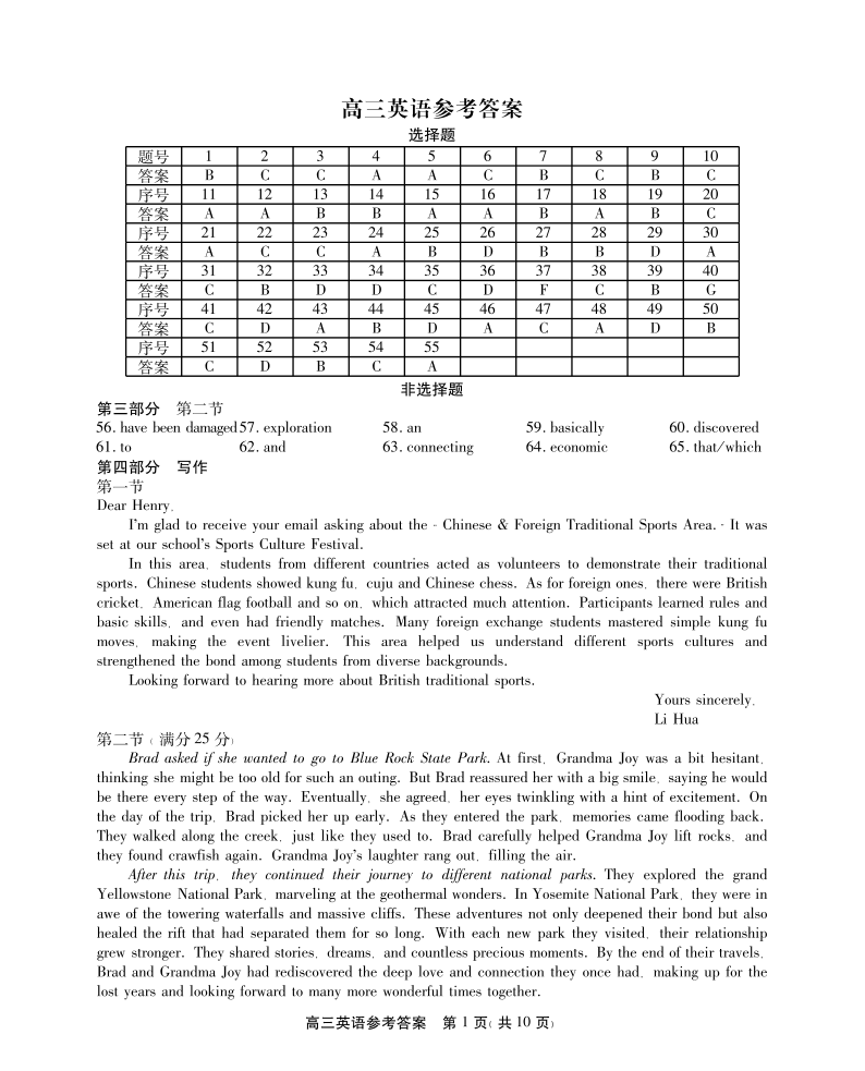 高三英语答案--安徽省鼎尖名校大联考2026届高三上学期10月月考