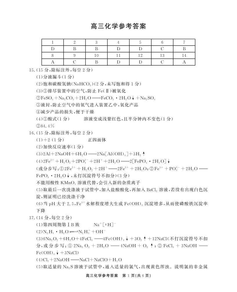 高三化学答案--安徽省鼎尖名校大联考2026届高三上学期10月月考