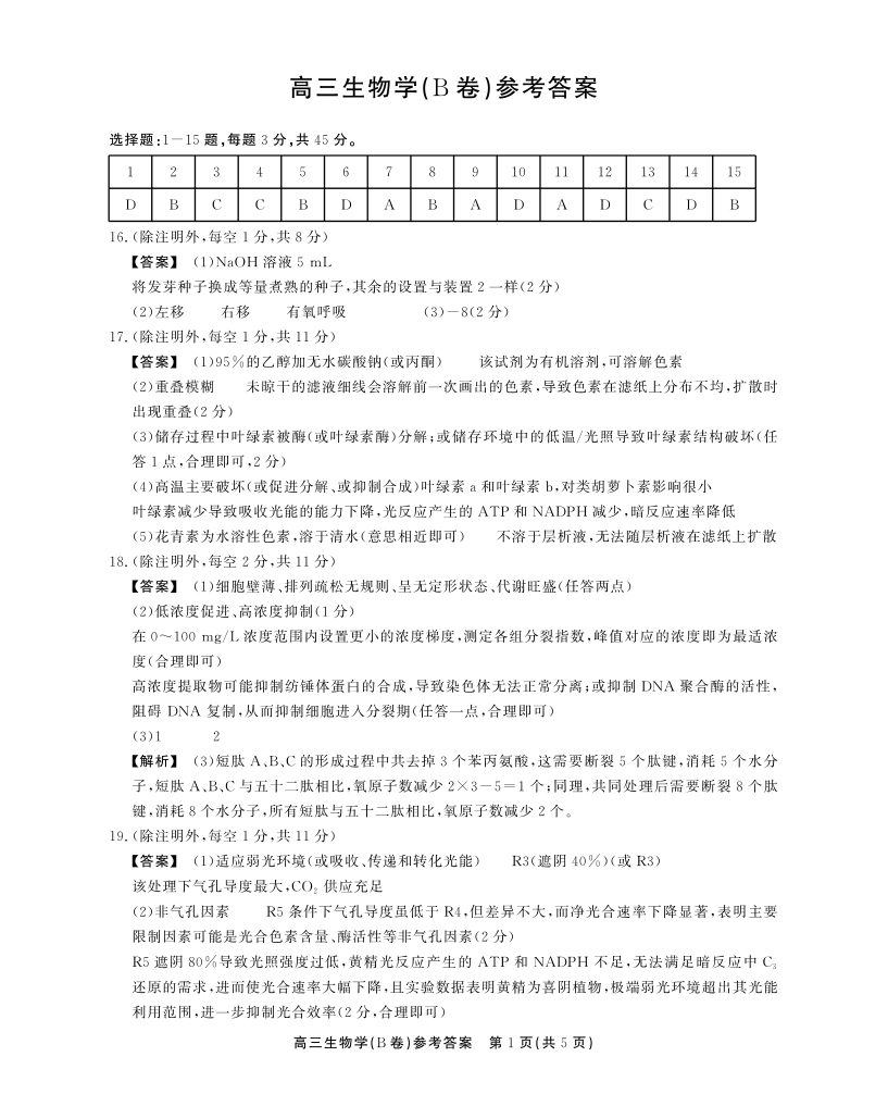 高三生物B答案--安徽省鼎尖名校大联考2026届高三上学期10月月考