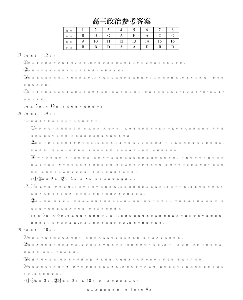 高三政治答案--安徽省鼎尖名校大联考2026届高三上学期10月月考
