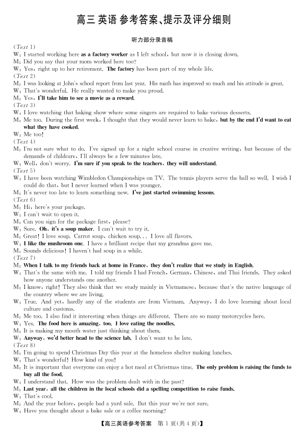 高三英语答案--安徽省江南十校2026届高三第一次综合素质检测