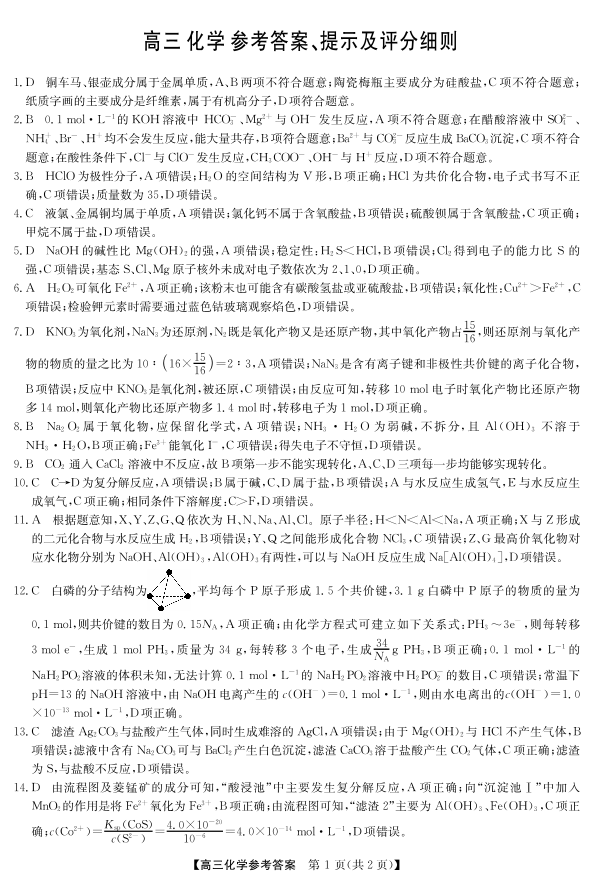 高三化学答案--安徽省江南十校2026届高三第一次综合素质检测