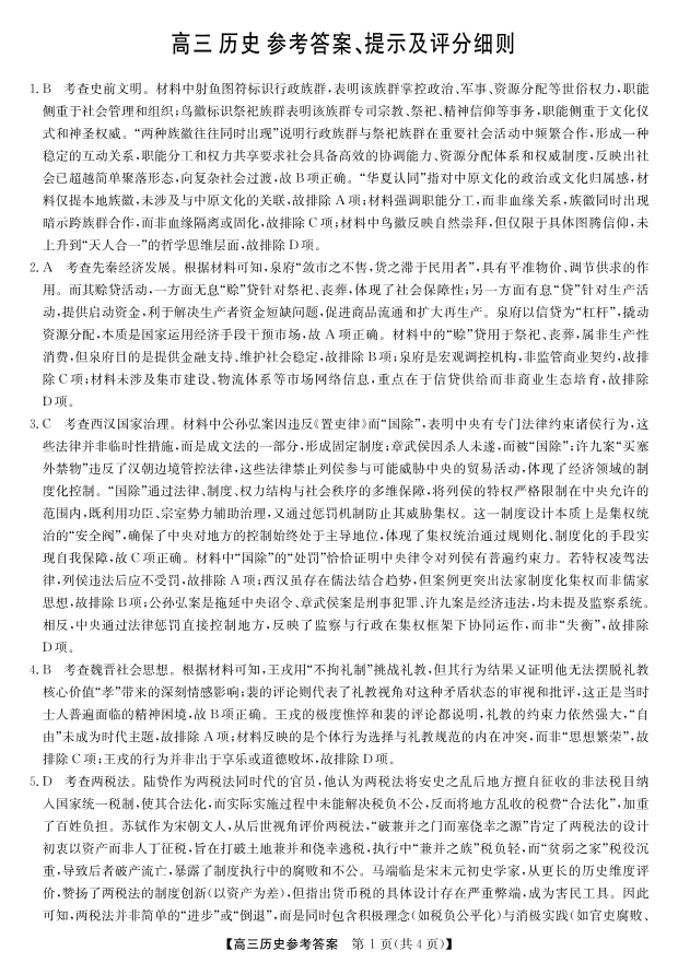 高三历史答案--安徽省江南十校2026届高三第一次综合素质检测